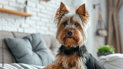 sofa, pillow, yorkshire terrier, couch, cosy, stylish, comfortable, interior, home decor, small dog, resting, lounging, modern, contemporary, furniture, design, relaxation, chic, trendy, warm, inviting, snug, canino, minimalist, tidy, neat, elegant, homelike, bright, airy, fashionable, welcoming, tranquil, serene