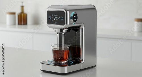 appliance, kitchen, beverage, modern, glasses, digital, display, silver, contemporary, light, technology, home, hot drink, tea, automated, electronic, device, drink, stainless, counter, pouring, smart, equipment, beautiful, colourful, bright, creative, elegant, stylish, professional, decorative, vibrant, stunning, amazing, marvellously, fantastic, gorgeous, lovely, charming, attractive, impressive, spectacular, magnificent, excellent, honed, quality
