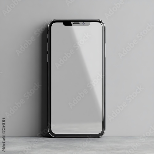 phone, smartphone, mobile, device, technology, communication, contraption, screen, blank, empty, display, touch, ios, android, design, minimalist, modern, sleek, metallic, glasses, camera, front, notch, bezel, edge, light, shadow, grey, background, wall, surface, concrete, studio, product, advertisement, presentation, space, digital, contemporary, elegant, simple, clean, isolated, rendering, style, shape, vertical
