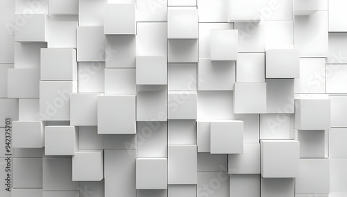 A modern, textured wall featuring an arrangement of white, three-dimensional cubes, ideal for minimalistic designs and backgrounds.