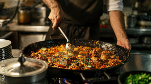 paella, epicure, seafood, saffron, rice, vibrant, favor, presentation, culinary, gastronomy, texture, herb, elegant, spice, ingredient, fusion, artisan, colours, platter, dish, exotic, modern, tradition, chef, eatery, dining, life events, luxury, decoration, arrangement, plating, fresh, seasonal, aromatic, innovative, creative, culture, cookery, rustic, refined, artisanal, vegetarian, grilled, organic, mediterranean, local, quality, sustainable, palate