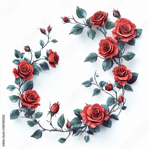 A modern vector illustration of red roses with green leaves on a white background, perfect for romantic events, weddings, and Valentine's Day designs.