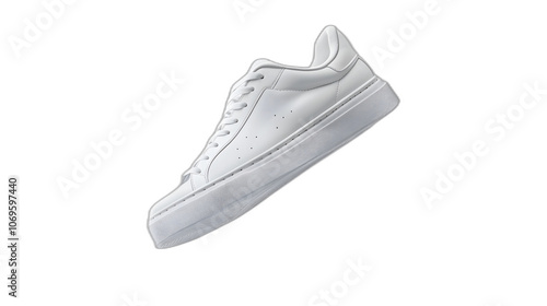 A modern white sneaker floating mid-air, with a minimalist design and sleek lines, showcasing its comfortable cushioning, 4k resolution, no background, no shadow