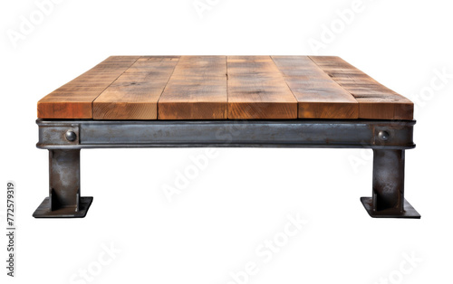 A modern wooden table with sleek metal legs, standing out elegantly against a white background