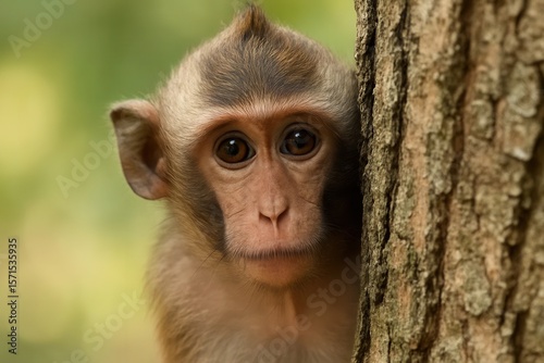 monkey, forest, tree, face, eye, fur, branch, green, blurred background, closeup, animal, macaque, wildlife, nature, wild, mammal, baby, mother, animal, zoo, asia, jungle, children, bali, sitting, looking, small, tropical, funny, siam, hair