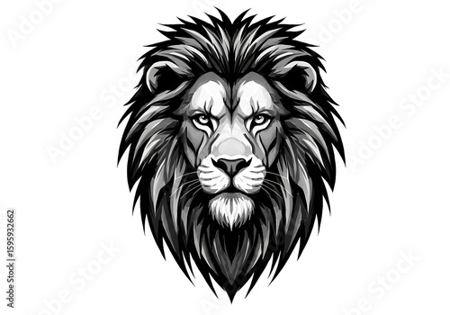 lion, mane, face, monochrome, illustration, animal, wildlife, predator, mammal, carnivore, portrait, head, fur, graphic, design, art, drawing, vignetting, black, white, greyscale, vector, clip art, symbol, icon, mascot, logotype, strength, power, courage, leadership, regal, king, fierce, bold, strong, confident, noble, majestic, elegant, stylish, modern, creative, artistic, detailed, intricate, isolated, background, digital