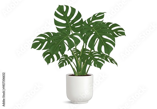 A monstera plant with large green leaves in a white pot isolated on a white background studio shot