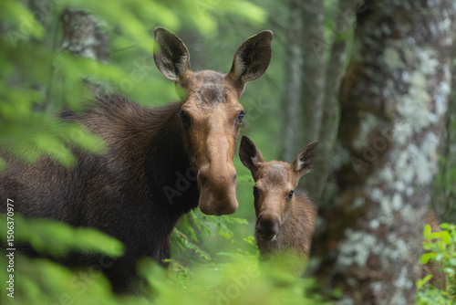 moose, calf, forest, wildlife, nature, closeup, animal portrait, summer, mammal, serene, wild animal, eye contact, blurred background, natural light, daytime