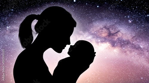 mother, baby, silhouette, star, night, sky, cosmos, universe, galaxy, milky way, love, tenderness, affection, care, protection, hope, new life, beginning, future, family, bond, motherhood, childhood, infant, newborn, cosmic, astral, celestial, dream, wonder, mystery, darkness, light, peace, serenity, quiet, calm, gentle, soft, hug, hugs, close, intimate, precious, valuable