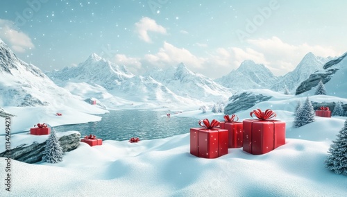 mountain, range, lake, foreground, several, red, box, christmas, area, snow, decorative, winter, holiday, celebrate, white, christmas, gift, december, merry, seasonal, present, background, festive, year, happy, new, card, bow, greeting, ribbon, shiny, blue, snowfall, surprise, ornament, snowflake, space, design, bright, eve, landscape, concept, snowy, cold, traditional, party, beautiful, light