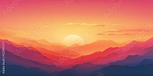 beautiful, mountain, range, large, sun, sky, middle, hill, warm, landscape, nature, glow, lush, sunset, casting, silhouette, green, sunrise, tree, evening, morning, background, travel, view, peak, vector, illustration, rock, horizon, summer, panorama, dawn, blue, light, scene, design, red, high, sunlight, panoramic, forest, orange, abstract, adventure, scenery, hiking, dusk, colours
