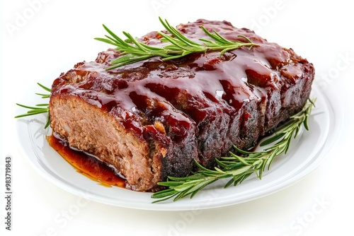 A mouthwatering German Hackbraten meatloaf, glazed with a rich sauce and adorned with fresh rosemary sprigs, ready to be enjoyed.
