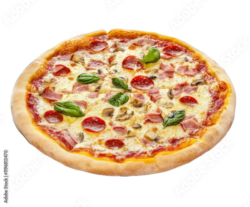 homemade, basil, deliciously, eatery, topping, lunch, italian, fast food, on, meal, background, food, dinner, cheese, tasty, pizza, ham, fresh, pepperoni, delicious, italian cuisine, hot, italian food, savoury, white, isolated, mushroom