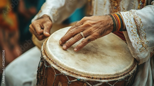 music, drum, instrument, hand, percussion, playing, rhythmic, finger, skin, texture, leather, ring, bracelet, wrist, arm, clothing, sleeve, embroidery, culture, traditional, detail, close, up, stage, performer, performance, beat, drumming, sound, art, craft, brown, string, thread, hand-made, pattern, design, rythm, concert, band, studio, natural, vintage, sharpened, light
