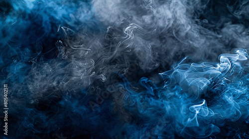 A mysterious and moody scene of smoke in shades of deep blue and gray, swirling in the darkness to create a sense of depth and intrigue.
