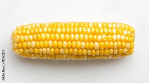 A neatly cut corn cob in half, showcasing the rows of tender kernels. The simplicity and freshness captured on a clean white background