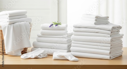 lifestyle, cleaning, tip, home, organisation, tool, maintenance, household, tidy, sock, pile, organizing, decor, hygiene, cleanliness, supply, towel, technique, folded, white, domestic, wooden, table, clean, neatly, towel, sock