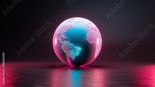 A neon globe glowing brightly in the darkness, with a minimalist and modern design that emphasizes the concept of global connectivity. The image offers plenty of copy space for customization.