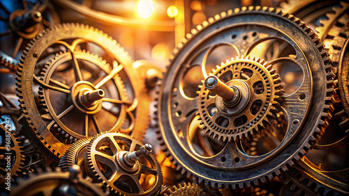 gear, sunlight, mechanical, system, industrial, beauty, detailed, complex, interlock, mesmerizing, gold, edge, metal, machinery, design, intricate, engineering, shine, structure, movement, clockwork, background, wallpaper, mechanic, technology, industrialism, precision, cog, steel, automation, craftsmanship, aesthetic, rotation, metallic, kinetic, elegance, brass, mechanism, innovation