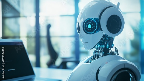 A next gen AI powered robotic assistant, organizing a digital workspace for a professional, modern office setting