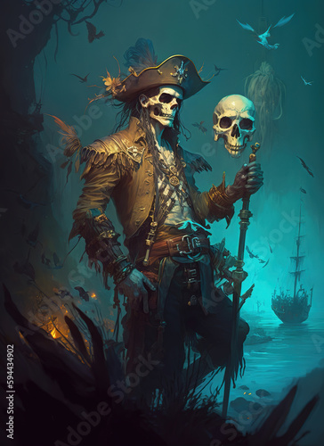 a painting of a skeleton in a pirate costume, skeleton pirate, dark fantasy art