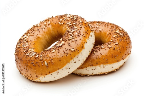 A pair of bagels stacked on top of each other, possibly for a creative display or photography prop