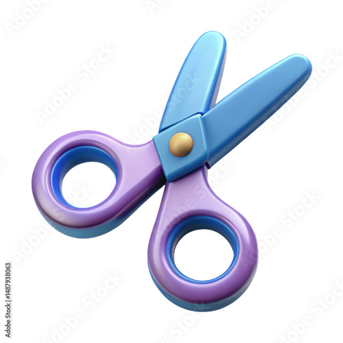 scissors, tool, cut, blade, handle, office, school, craft, equipment, metal, sharp, object, stationery, design, illustration, clip, paper, open, blue, purple, gold, plastic, shiny, metallic, material, shape, art, graphic, element, icon, symbol, signs, business, education, work, domestic, household, instrument, utility, closeup, nobody, single, rendering, studio, style, modern, isolated
