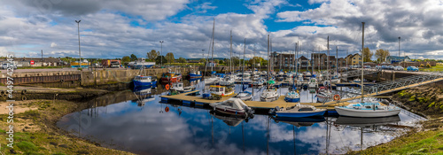 A panorama view across the harbour at Nairn, Scotland on a summers day