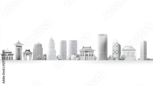 A panoramic view of a modern city skyline blending traditional architecture with contemporary buildings