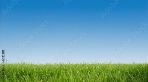A Panoramic View of Lush Green Grass Beneath a Clear Blue Sky, Capturing the Essence of Refreshing Spring Nature.