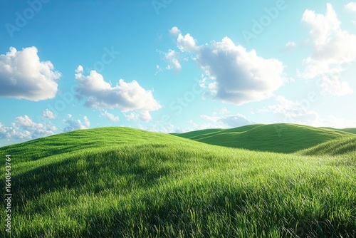 A panoramic view of rolling hills covered in lush green grass under a clear blue sky, showcasing the beauty of rural landscapes, 8k, realistic