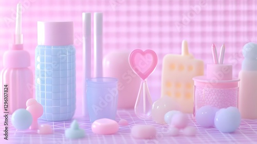 beauty, pastel, cosmetic, arrangement, product, pink, soft, stylish, aesthetic, colourful, accessory, make-up, feminine, decor, display, photo, still life, vibrant, creative, modern, design, lifestyle, minimalism, cute, trendy, toy, fashion, art, relaxation, harmony, texture, shape, collection, artistic, playful, prop, visual, smooth, light, cheerful, joyful, charming, unique, whimsical, delightful, fantasy, elegance, inspiration