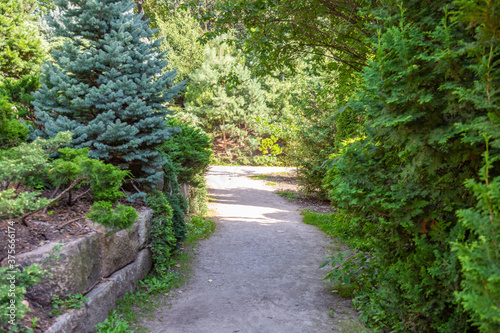 A path for pedestrians to walk in a modern green city park in the summer daytime