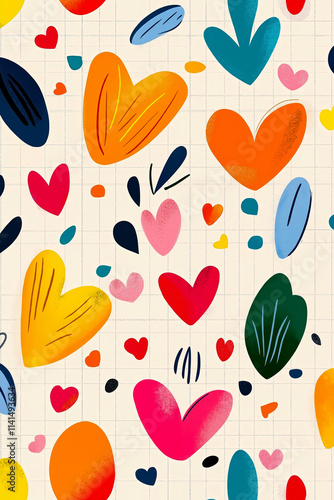 pattern, colourful, heart, white, background, love, graphic, design, illustration, abstract, art, decorative, modern, flat, digital, wallpaper, leaf, different, size, colours, red, orange, yellow, pink, blue, green, purple, scattered, across, overlapping, grid, texture, small, square, rectangle, style, playful, whimsical, experiencing