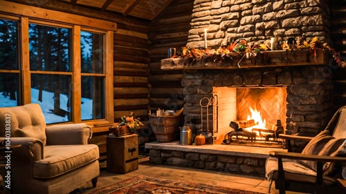 A peaceful autumn night in a cozy rustic cabin V10