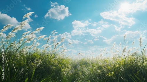 nature, horizontal, photo, no people, grass, outdoors, plant, growth, color image, tranquil scene, meadow, day, summer, calmness, sunlight, freshness, sky, wind, rural scene, uncultivated, idylli, springtime, copy space, britain, closeup, social issue, environmental conservation, agriculture, swaying, background, relaxation, sunbeam, us, pasture, wheat, sun, travel destination, beauty, blue, clear sky