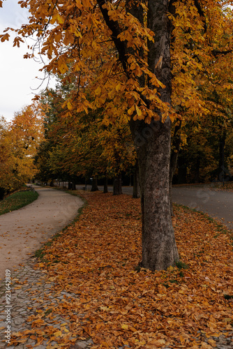 A peaceful stroll through colorful autumn foliage in Stromovka park, Prague, Czech republic