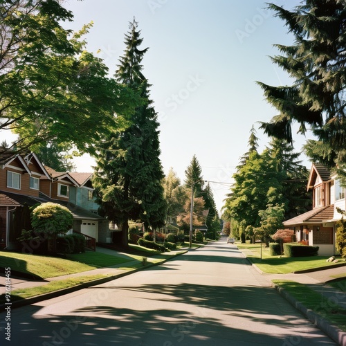 suburban, street, tree, house, evening light, peaceful, neighbourhood, calmness, residential area, charming, golden hour, quiet, serene, greenery, architecture, idylli, foliage, community, landscape, home, sunset, shadow, outdoors, calm, lawn, pathway, scenic, real estate, nature, suburbia, sky, roadside, clean, day, environment, symmetry