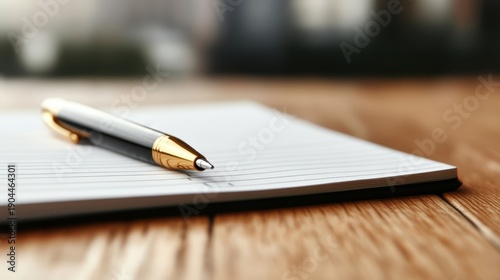 A pen positioned gracefully on an open notebook evokes an atmosphere of creativity and readiness, inviting ideas to flow freely onto the blank pages, capturing the essence of inspiration.