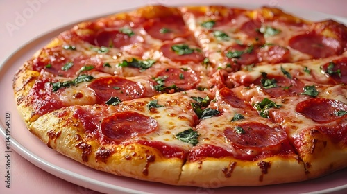 pepperoni, pizza, cheese, herb, top, slice, white, plate, food, italian, mozzarella, homemade, salami, sauce, fast, baked, meat, snack, tasty, dinner, crust, tomatoes, hot, unhealthy, sausage, cooked, vegetable, table, pepper, meal, traditional, fresh, background, delicious, view, closeup, dough, rustic, ham, cookery, lunch, eatery, wooden, bacon, junk, fast food, basil, nobody, italian food