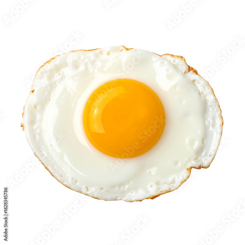 A perfectly cooked fried egg with a vibrant yellow yolk and a glossy white egg white surrounding it.