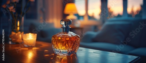 A perfume bottle on a bedside table, its fragrance lingering in the air of an empty room, a silent companion in a lonely night 8K , high-resolution, ultra HD,up32K HD