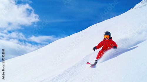 person, red, ski, suit, skiing, snowy, slope, sport, snow, outdoors, winter, extreme, sport, mountain, nature, man, 1, goggles, vacation, adventure, fun, snowboarding, recreational, pursuit, blue, adult, activity, leisure, motion, caucasian, speed, snowboard, peak, lifestyle, season, woman, cheerful, healthy lifestyle, exercising, smiling, alpine, powder, joy, range, landscape, travel, day