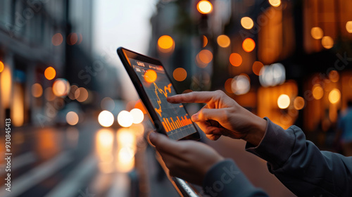 tablet, stock exchange, analysis, finance, trading, datum, technology, city, investment, business, graph, market, economy, financial, hand, touch, digital, urban, screen, economic, chart, mobile, statistic, growth, money, trade, modern, commerce, street, night, light, blurred, city life, interactive, wealth