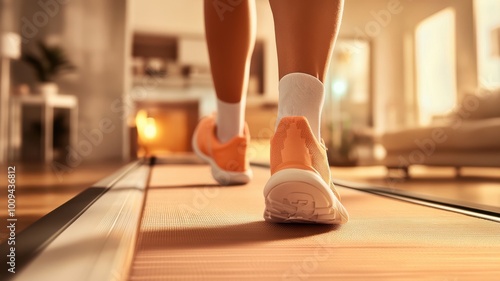 person, running, treadmill, living, room, furniture, including, sport, orange, potted, wearing, couch, shoe, plant, white, fitness, active, lifestyle, sock, healthy, gym, athlete, exercise, jogging, fit, training, equipment, female, health, wellness, indoor, physical, muscular, machine, young, walk, speed, woman, cardio, club, adult, leg, physical exercise, motion, closeup