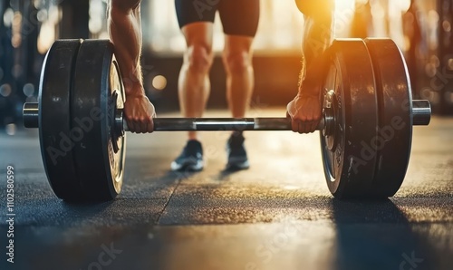 A person lifting a heavy barbell in a gym, showcasing strength and fitness dedication.