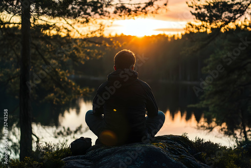 meditation, lake, sunset, forest, silhouette, calm, nature, mindfulness, peace, calmness, still water, outdoors, wellness, serene, golden hour, tree, relaxation, zen, solitude, retreat, breathing, quiet, soft light, harmony, scenic, lifestyle, balance, mental health, silence, atmosphere, perspective, evening, contemplation, spiritual, natural, wilderness, inspired, rest, copy space, warm tones, meditating, landscape, healthy living