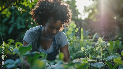 A person practicing mindfulness while gardening, finding peace and connection with nature
