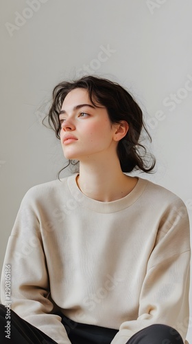 A person sitting in a comfortable position and lost in thought, Generative AI