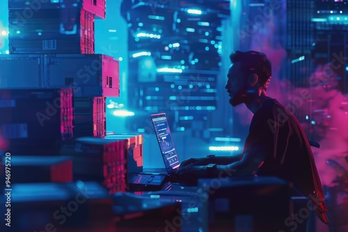 man, person, laptop, computer, office, workspace, desk, technology, digital, work, home, remote, freelancer, job, career, professional, adult